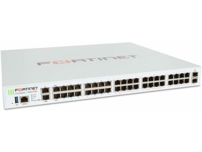 FortiGate 140E-POE FG-140E-POE 42x GE RJ45 ports (including 2x WAN ports, 1x Mgmt port, 1x HA port, 24x RJ45 GE PoE/PoE+ ports, 14x switch ports), 2x GE SFP DMZ slots.